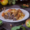 Перед споживанням млинці обсмажують на сковороді або запікають у духовці при температурі 180°C протягом 5–7 хвилин до повного прогрівання начинки й утворення рум’яної скоринки.