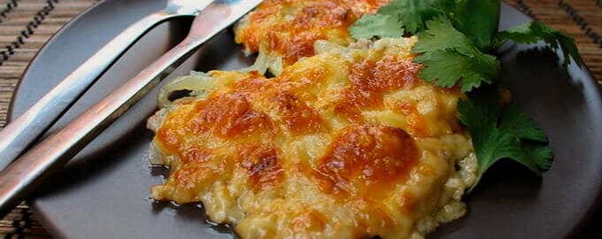 Подавати з гарніром із картопляного пюре, рису або овочів, прикрасивши зеленню.