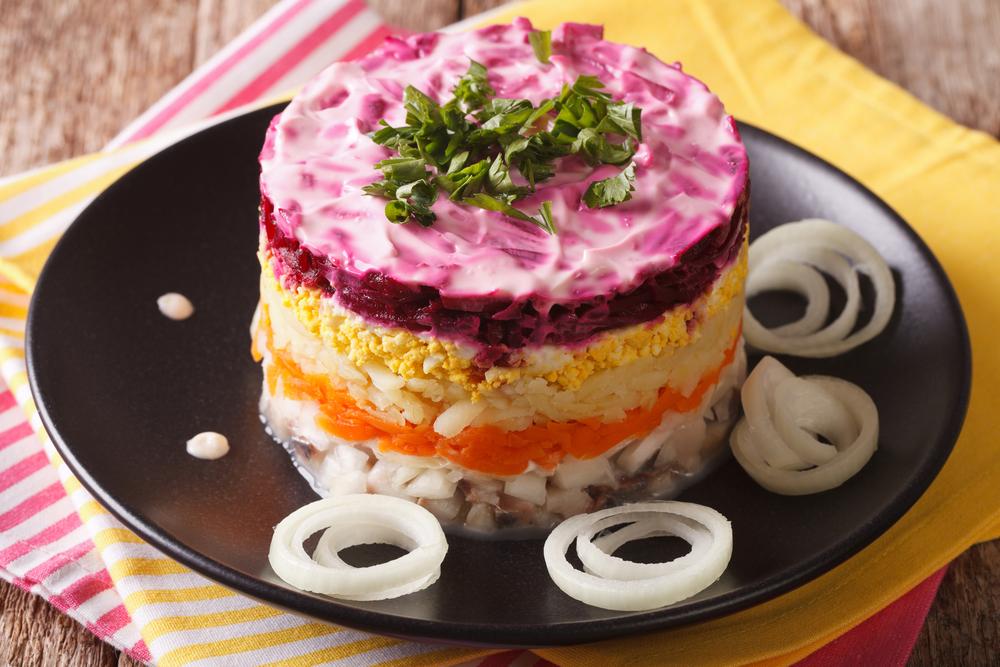 Оселедець під шубою — це багатошаровий салатний напівфабрикат холодної закуски, до складу якого входить філе оселедця, варені овочі (картопля, морква, буряк), яйця та майонез. Компоненти викладаються шарами у визначеній послідовності, що забезпечує гармонійне поєднання смаків. Виріб має ніжну консистенцію, виражений аромат оселедця та овочів. Призначений для охолодження та подальшої реалізації у готовому вигляді.