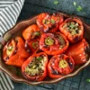 Викласти помідори у форму або сотейник, за бажанням полити томатним або сметанним соусом.